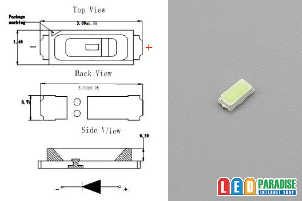 ※こちらのLEDは3014サイズ(3.0mm×1.4mm)となりますのでご注意下さい。