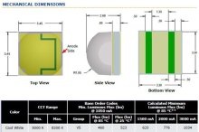 3.45mm角の小さなパッケージで、最大 1226 lm @ 10Wの高出力LEDです。