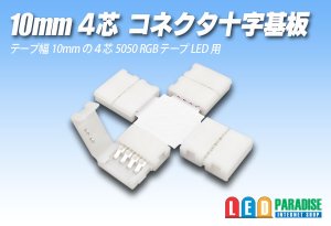 テープ幅10mm4芯タイプの5050テープLED等に使用が可能な十字コネクターです。
