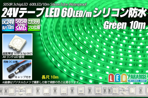 ホーム | 5050テープLED > 24V長尺10m24VテープLED60LED/mシリコン防水 緑色 10m