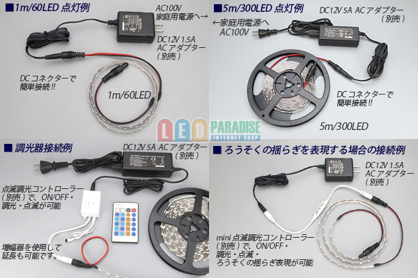 ACアダプター12V 1.5Aで、 1本1m点灯可能