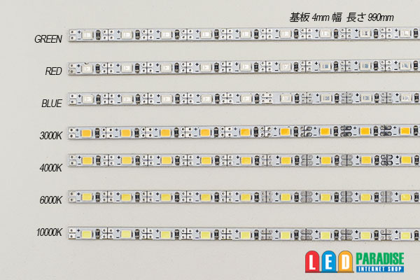 極細4mmの基板に2835chipLEDを80LED/mでぎっしりと配置しているので