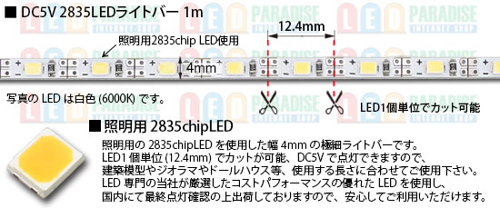 DC5V 2835 LEDライトバー 1m      各1本 980円