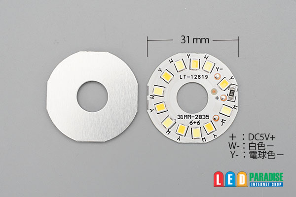 ホーム | 専用基板 > パネル基板DC5V 2835調色アルミ基板 31mm 1.5W B4