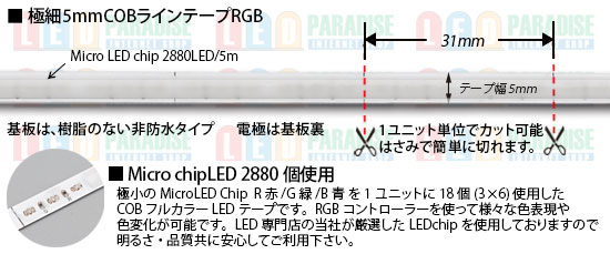 極細 5mm COBラインテープLED RGB 2880LED/5m